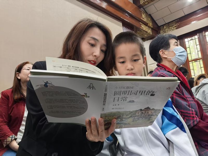 近年来,圆明园依托丰富的历史文化资源,打造了《生肖满堂》圆明园十二生肖系列儿童绘本、《圆明园互动立体书》、《圆明园》科普绘本、《圆明园从前有多美》、《今日宜逛园》、《大美圆明园》等众多优秀绘本读物,让现实中残存的遗迹在文字中熠熠生辉。此次圆明园读书日共举办七场读书分享会,邀请市民游客,以文润心,共游书海。
