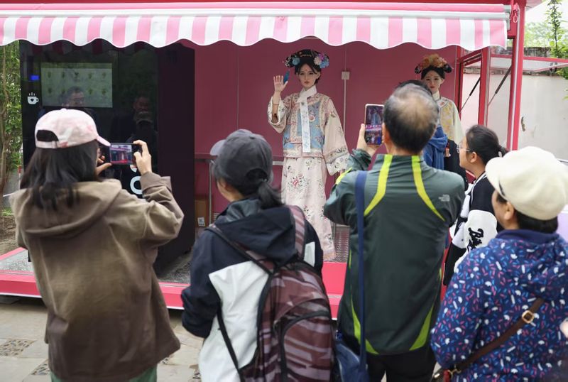 目前,人形机器人技术研发日新月异,今年踏青节期间,圆明园创新尝试,根据景区文化背景定制设计身高1.68米的仿真人形机器人,采用清代格格装扮,招揽游客进行咖啡售卖,提升游客游园体验。此外,机器人还能通过语言大模型开发在应用场景中不断迭代学习,与游客进行零距离对话交流。