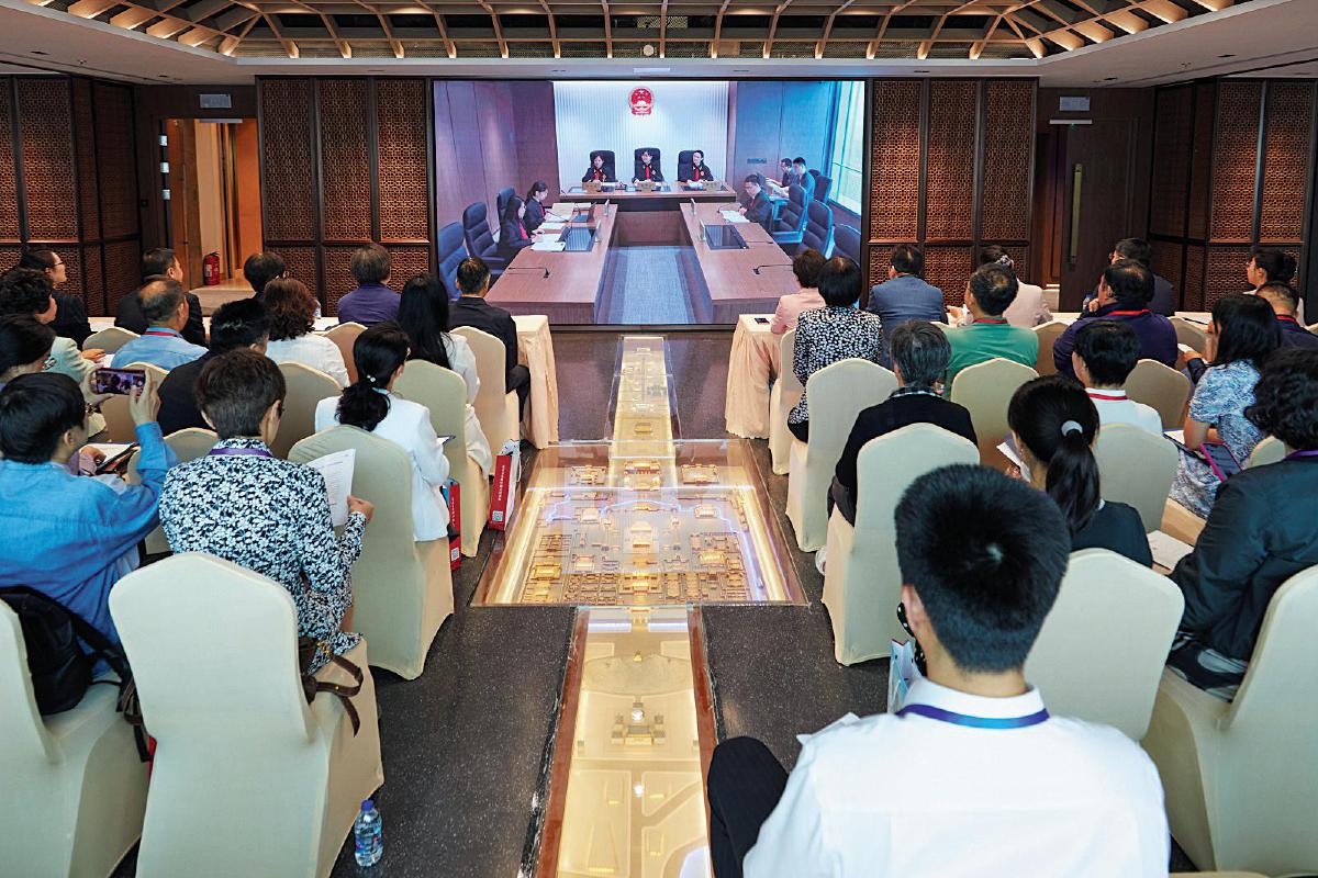 5月21日,多位北京人大代表等全程观摩北京国际商事法庭巡回审判第一案。图片/北京四中院供图