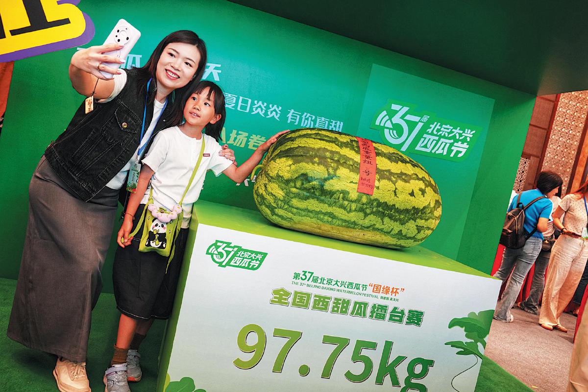蝉鸣渐起时,夏日餐桌的“顶流担当”西瓜再次成为市民果篮里的主角。日前,在北京地区头茬西瓜即将进入高峰前夕,一年一度的大兴西瓜节擂台赛打响,来自全国各地的1200余瓜品在京争霸“瓜王”。5月24日,大兴区庞各庄镇瓜农谢政江种植的195.5斤“巨无霸”西瓜刷新历届擂台赛重量纪录,新晋“瓜王”。与此同时,来自上海、河南、内蒙古等地的种植户,分别以中型西瓜、小型西瓜、甜瓜等品类摘得各组别“瓜王”,西瓜产业也早已从“以大为尊”转向“多元争霸”。 新京报记者 耿子叶