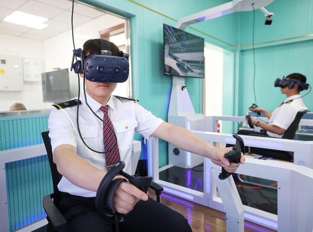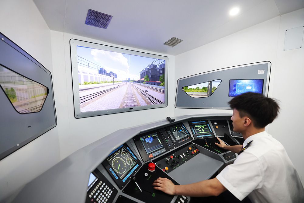 动车组司机正在操作VR模拟驾驶系统。