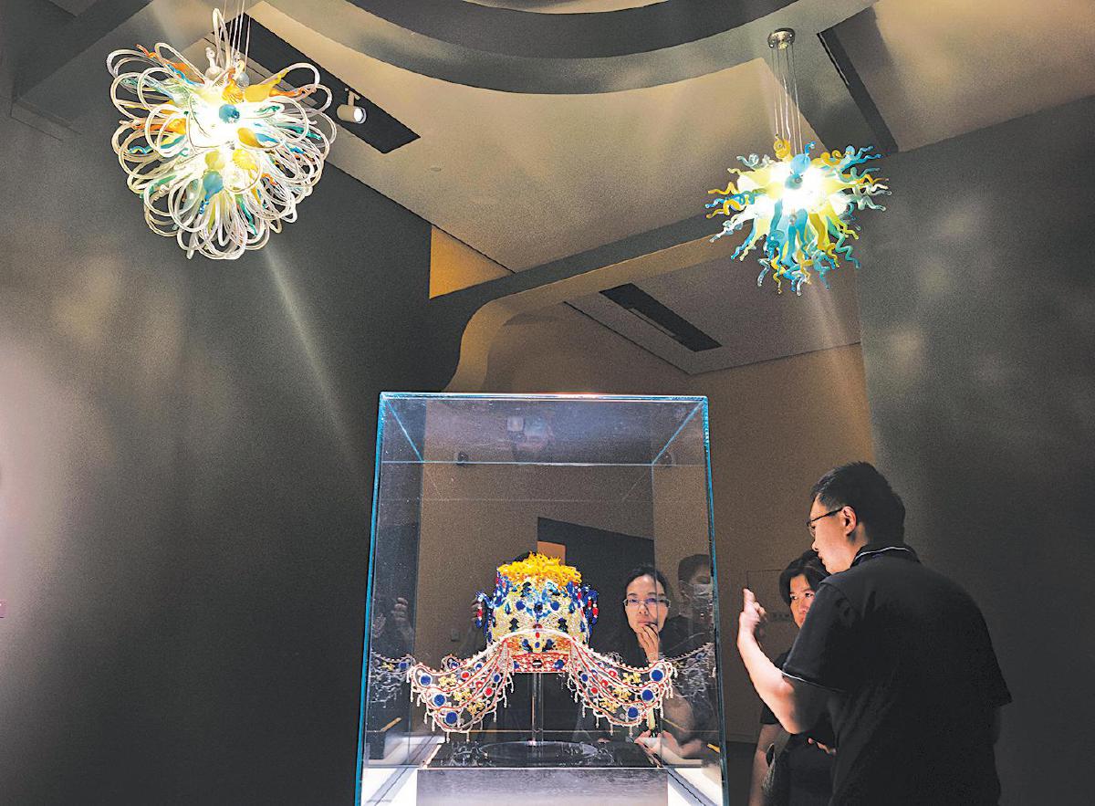 6月10日,中国国家博物馆,“琉光璃彩——淄博琉璃艺术展”开幕。图为嘉宾在观看琉璃凤冠。 新京报记者 浦峰 摄