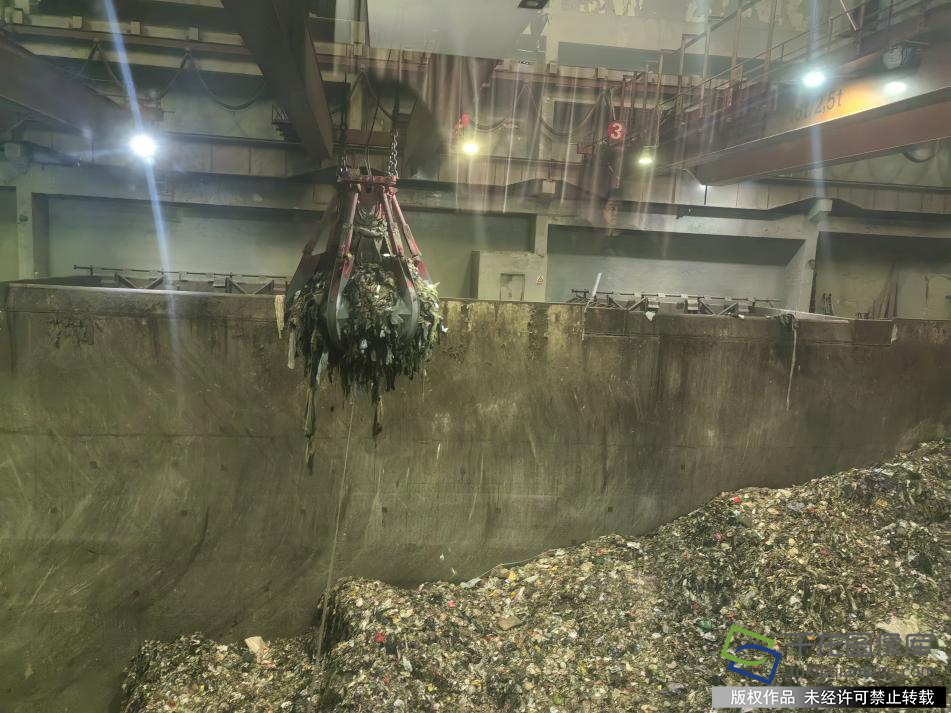 清洁焚烧中心的垃圾吊正在工作中,一次可抓8吨垃圾 千龙网记者 蔡健雅摄