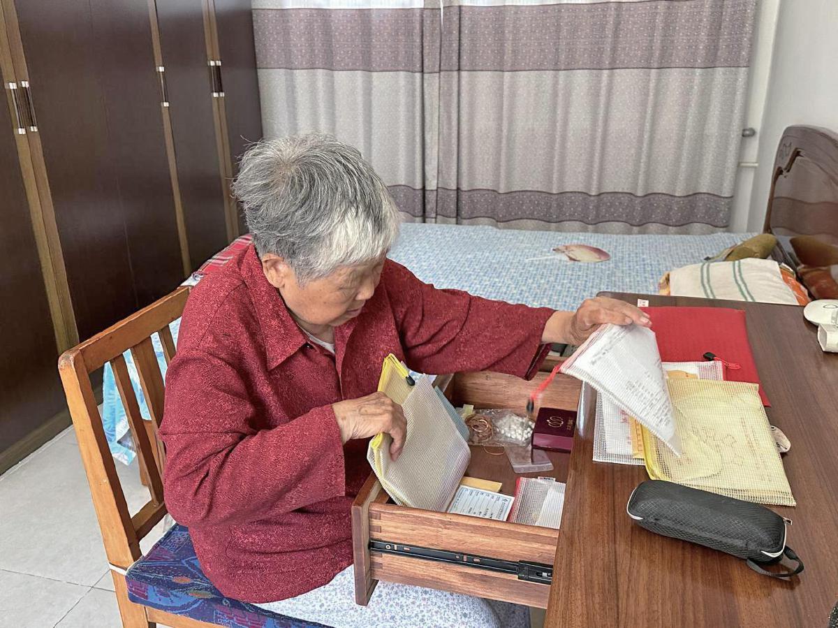 董桂珍小心翼翼从抽屉里取出珍贵照片和资料。 新京报记者 姜慧梓 摄