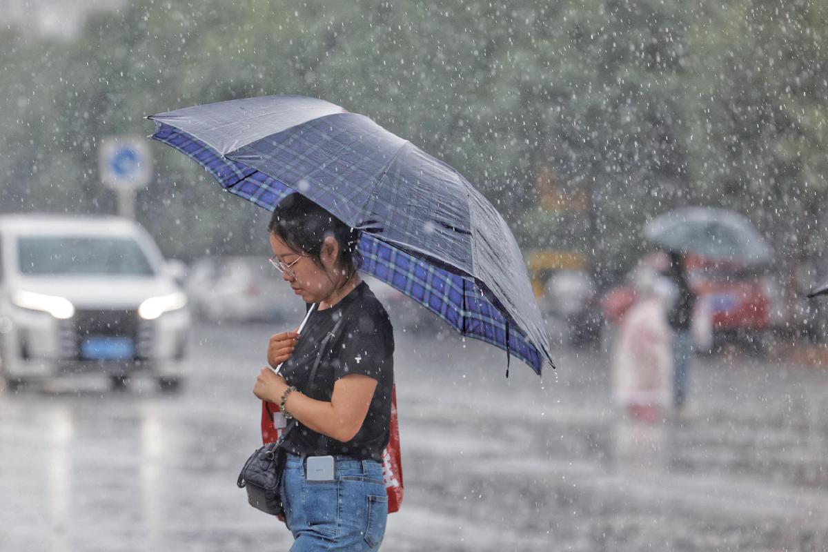 场景:市民在雨中出行。新京报记者 尹亚飞 摄