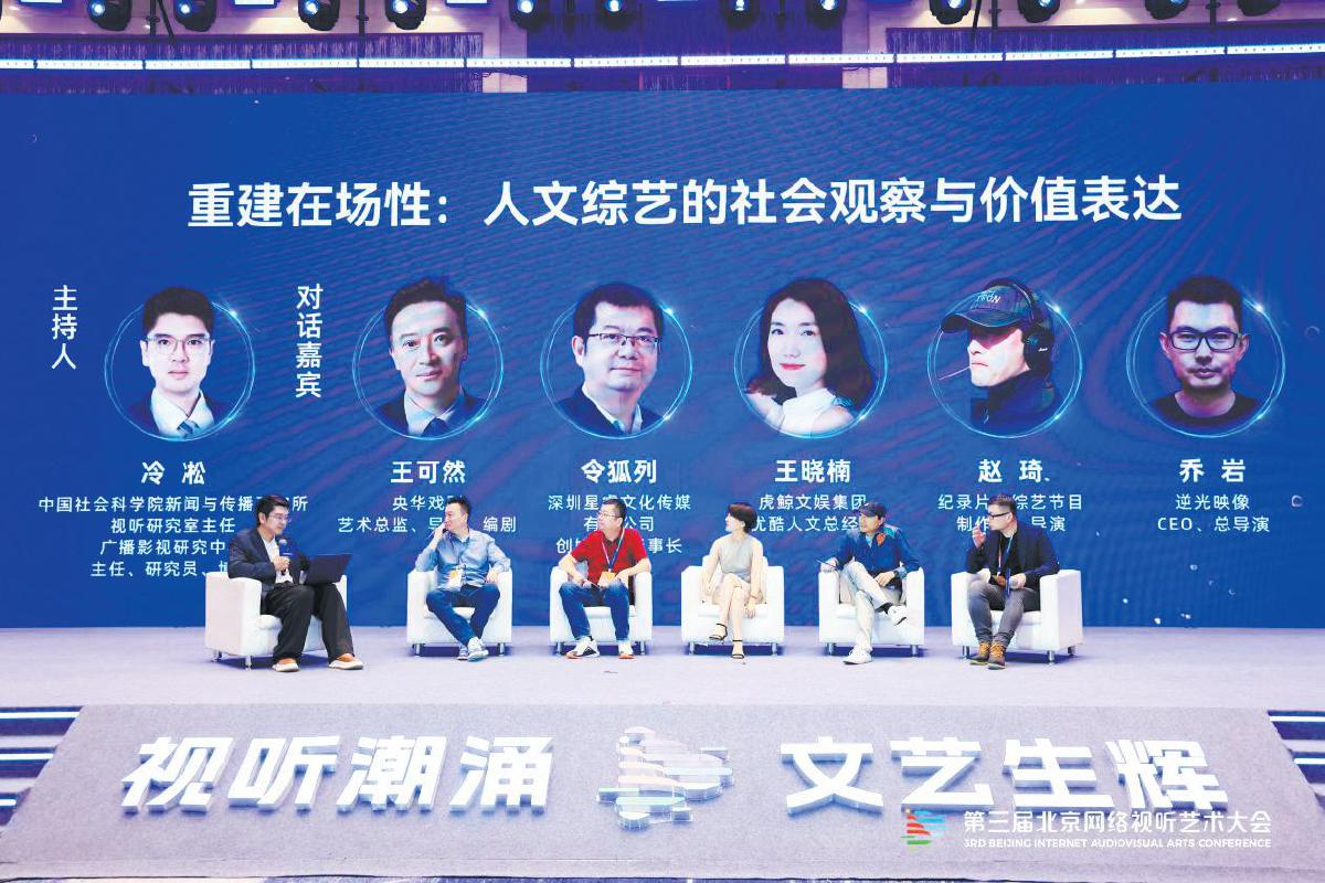 在“重建在场性:人文综艺的社会观察与价值表达”圆桌对话上,央华戏剧艺术总监、导演、编剧王可然表示,“体验”是创作的内核,“传播”是创作的关键,依托跨媒介的艺术探索,戏剧与综艺将携手迸发别样精彩。深圳星睿文化传媒有限公司创始人、董事长令狐列关注综艺的文化价值,在他看来,创作者要甘做文化的“矿工”与“导游”,在“流量”和“留量”中搭建起文化生态。虎鲸文娱集团优酷人文总经理王晓楠表示,“破题”是综艺节目创作的关键所在,要深挖、深扎,找到底层逻辑和叙事支点。纪录片、综艺节目制作人、导演赵琦认为,要找到综艺节目投射的内在意义,为观众带来瞬间的美好与意义。逆光映像CEO、总导演乔岩表示,技术是手段、创作是灵魂,当创作化为记录理想的媒介,我们终将讲好中国故事。