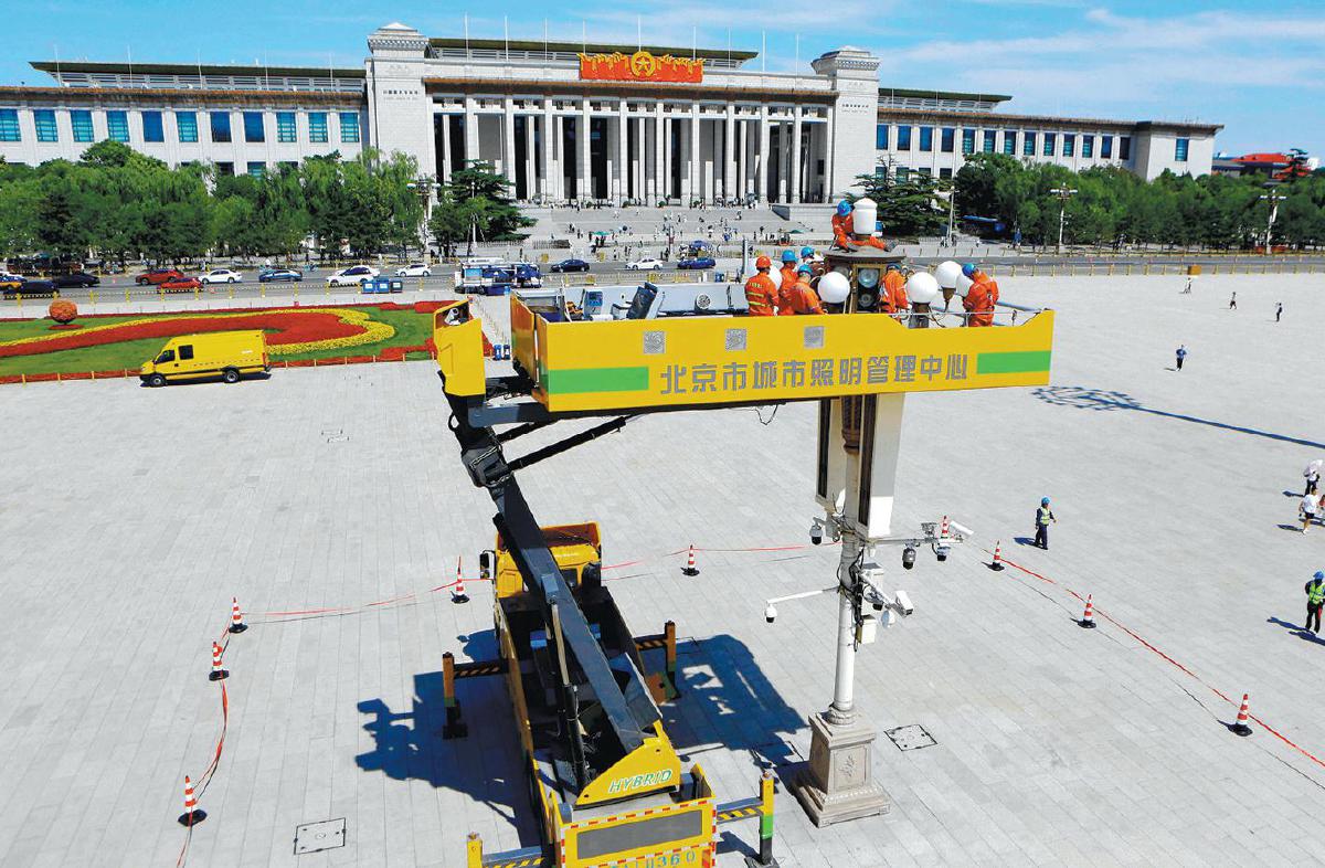 此外,照明中心还将对天安门广场内4基高杆灯进行全面检测,确保天安门广场地区照明设备保持最佳状态。