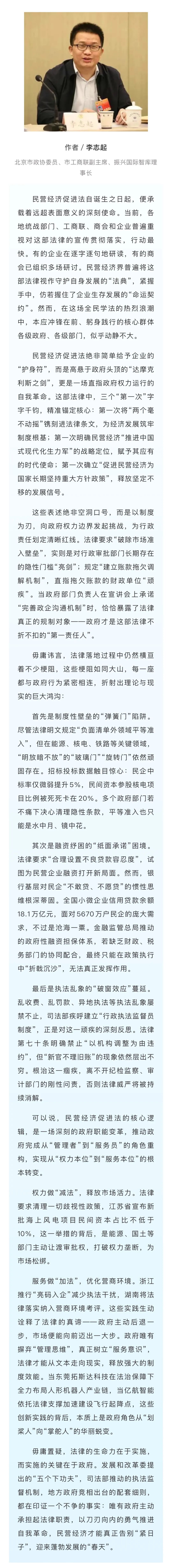 来源标题:李志起:谁最应该学习民营经济促进法?