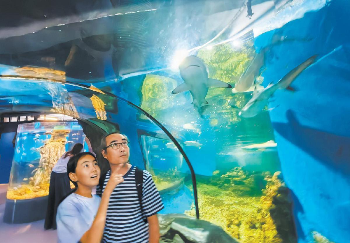 观众参观水族馆。