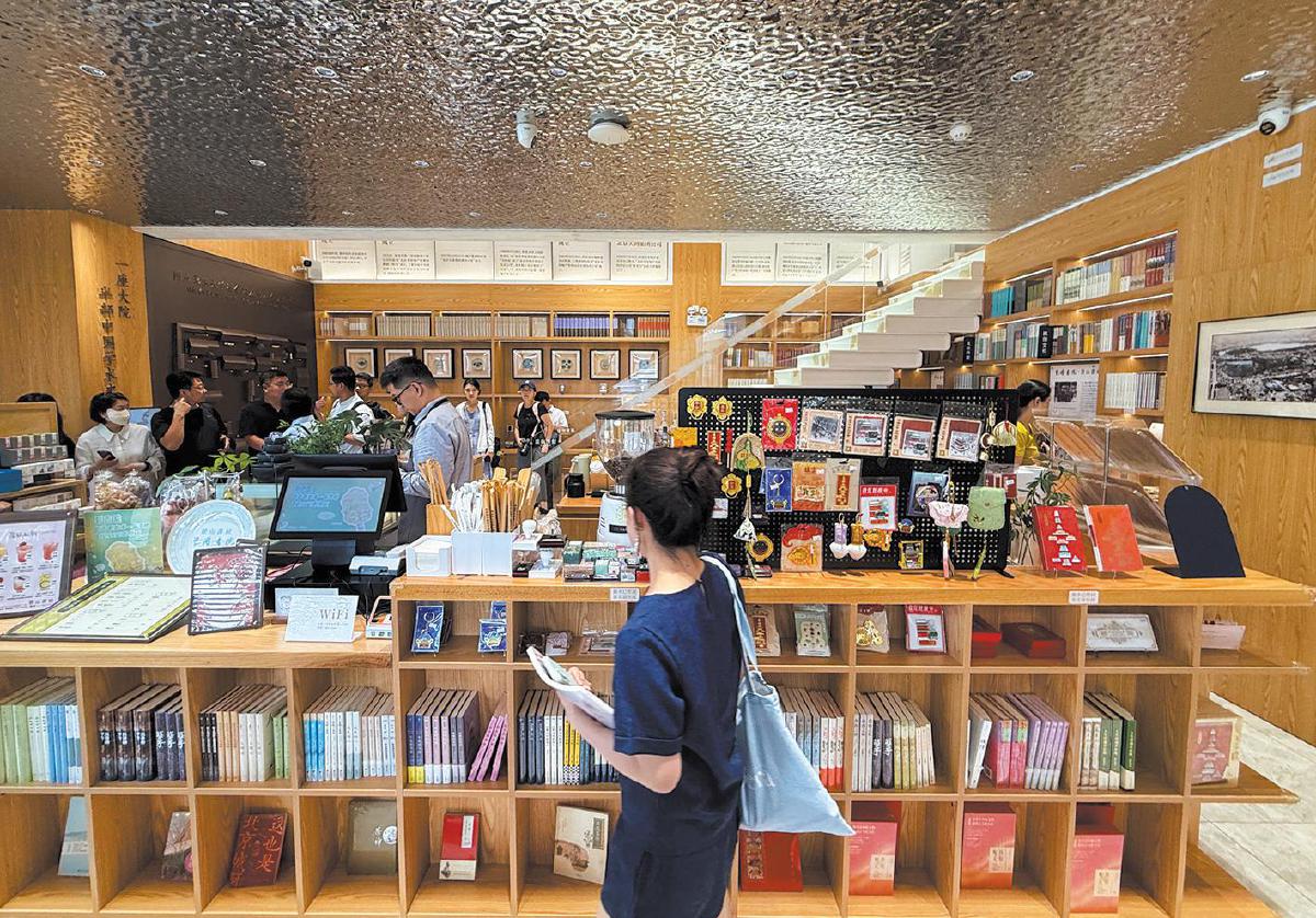 首开首院文化金融产业园,市民在书社内挑选书籍。