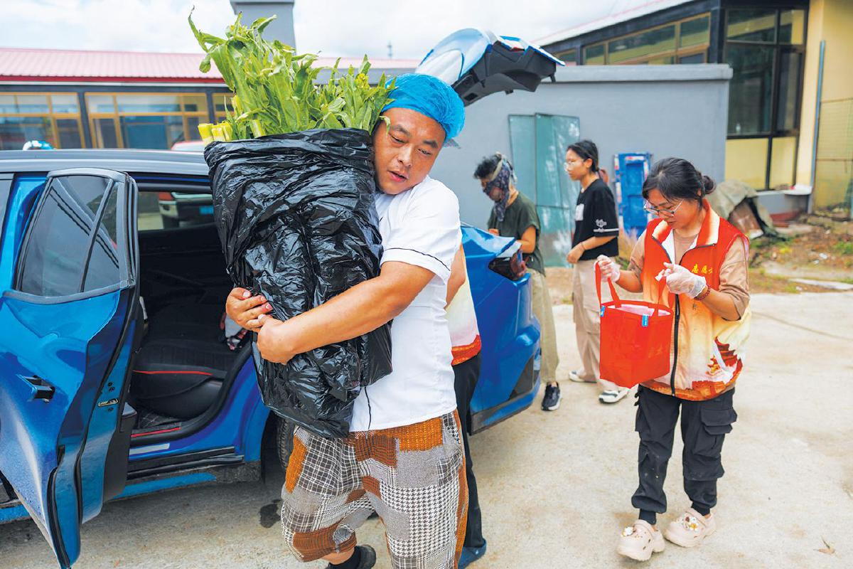 志愿者的朋友为“暖心灶台”送来蔬菜、生活用品。