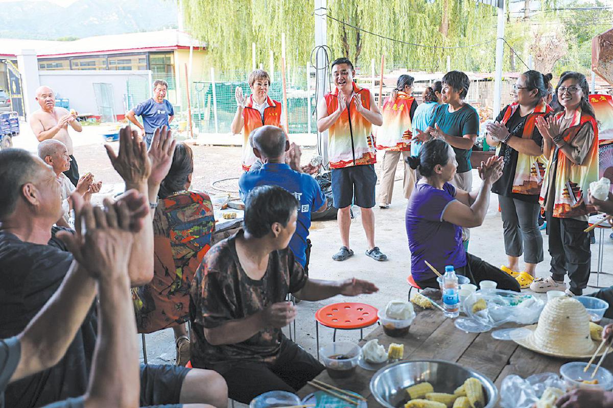 8月5日,密云区大城子镇苍术会村,志愿者在“暖心灶台”为村民打饭。
