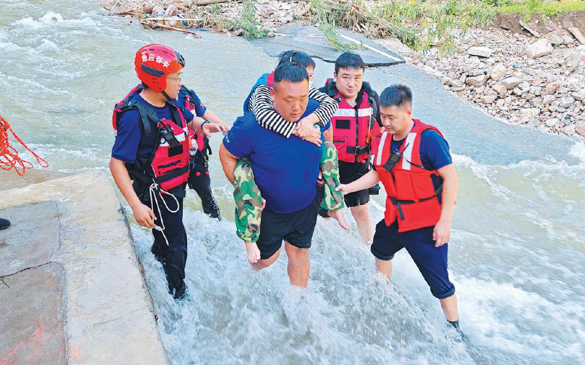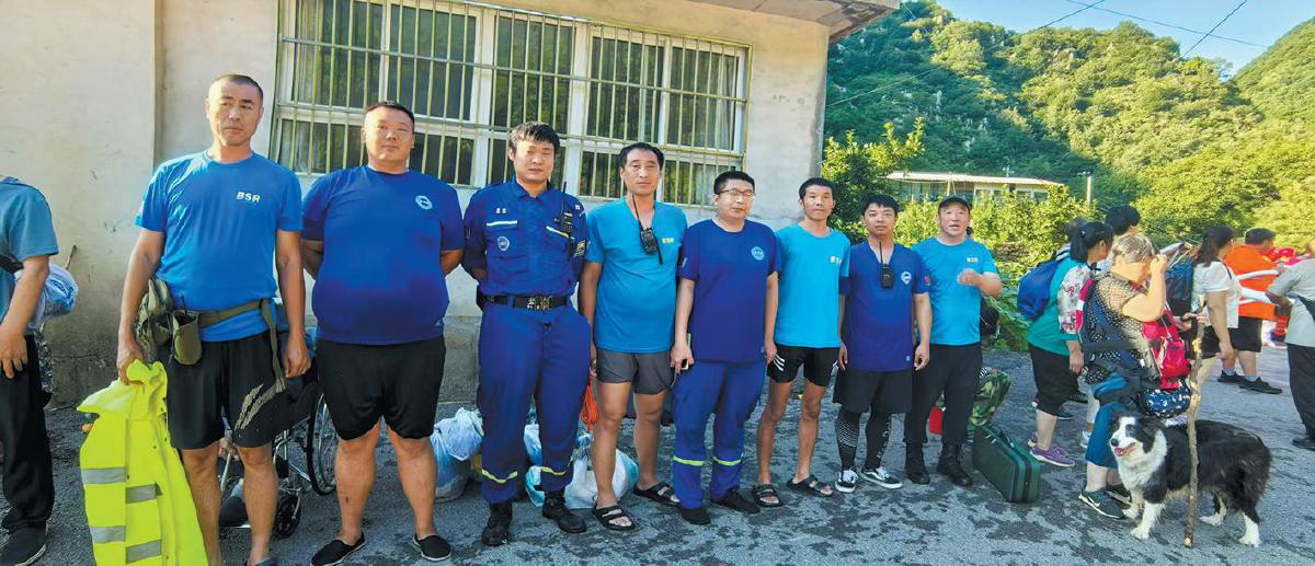 在平谷区蓝天救援队队部,备勤队员们早早便严阵以待、心弦紧绷。次日天刚亮,由党员干部带头的冲锋小队便率先冲破雨幕、向险而行,成功转移出被困在山区的38名村民,也是首支进入镇罗营镇北水峪村的救援力量。徒手开路,穿越湍流,一度与后方失联,当确认38名被困村民一个都不少、安然无恙的瞬间,所有的艰险跋涉仿佛都有了答案。如果有些时候,人们可以只注重结果,而忽视过程,对于蓝天救援队的队员来说,便是此刻,“看到被困村民一个都不少,我们就踏实了”。