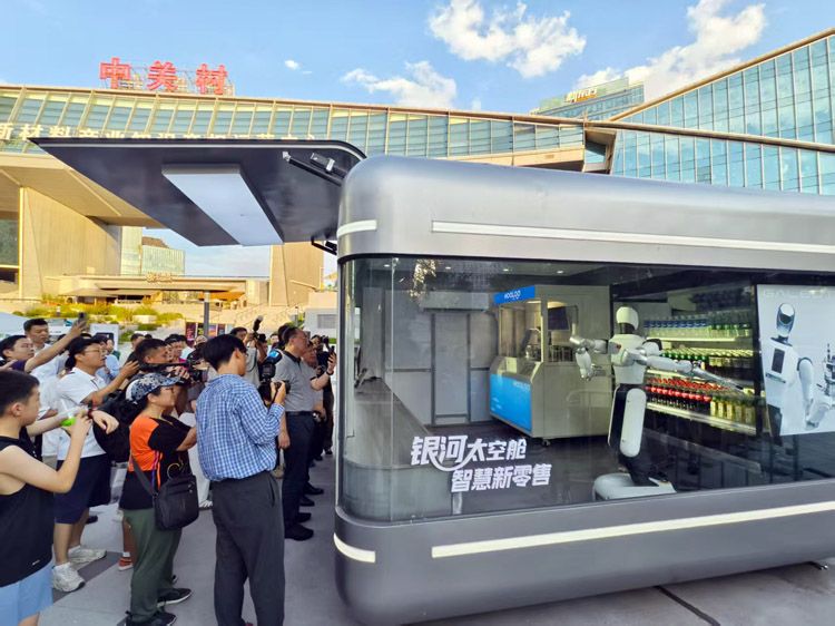 8月7日晚,北京中关村大融城,银河太空舱全球首发仪式暨“十城百店”合作伙伴计划启动仪式举行,这意味着,全球首个城市级、常态化运营的人形机器人示范区正式落地海淀。