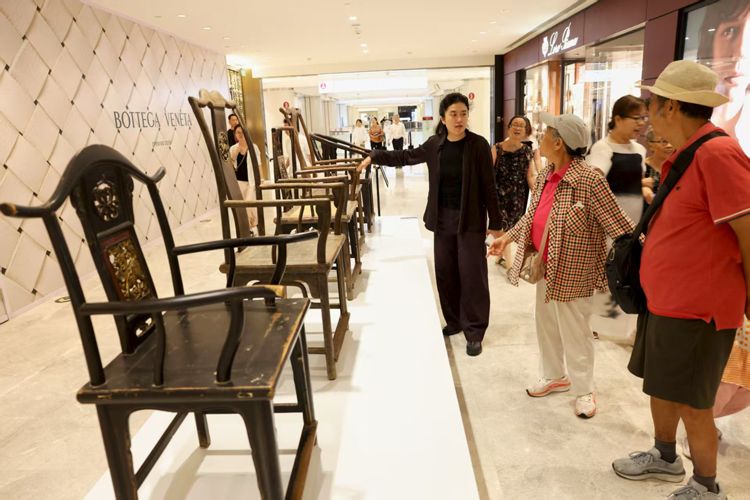 千秋寺艺术空间主理人张滕为观众介绍明清家具。