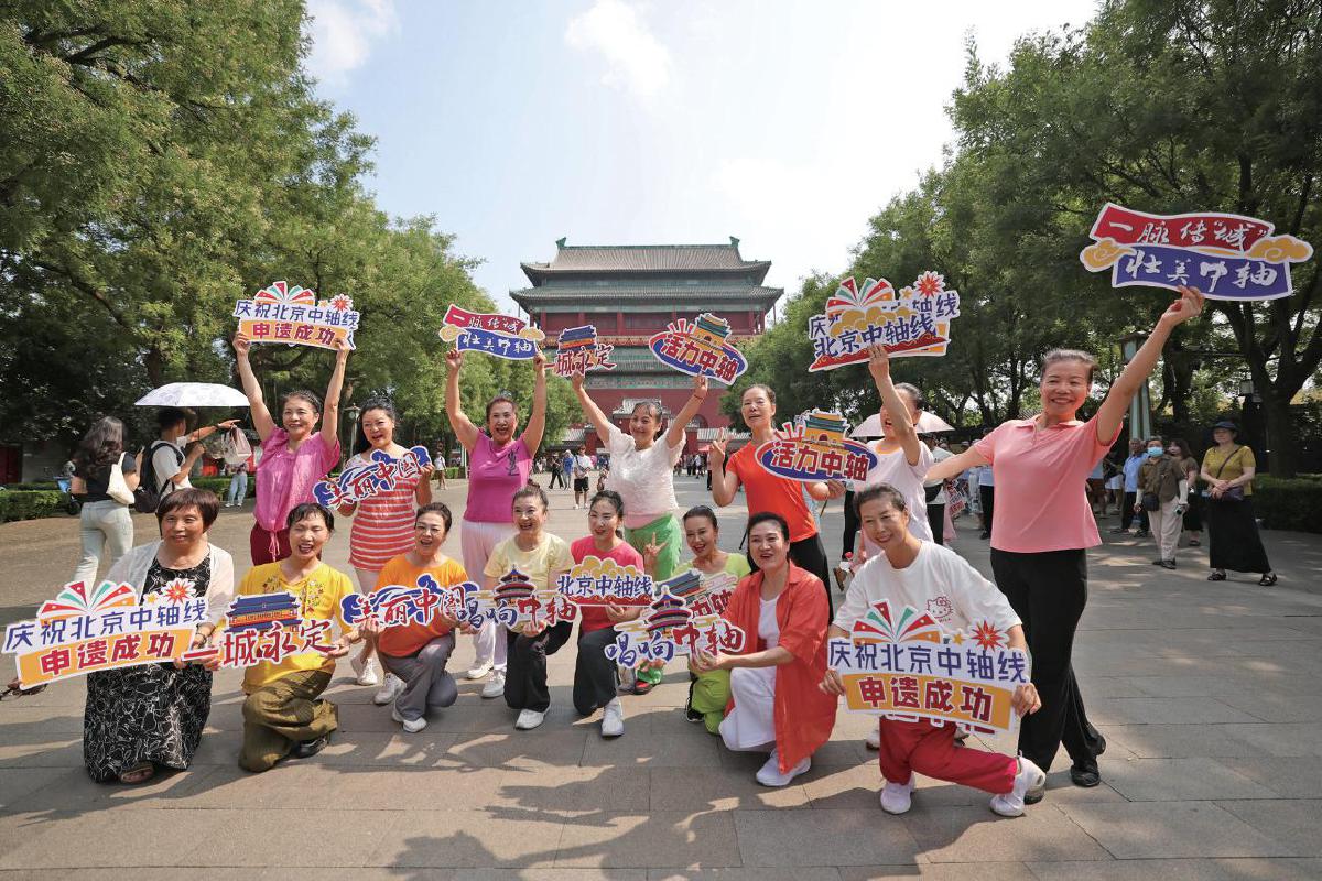 2024年7月27日,市民来到钟鼓楼广场参加北京中轴线申遗成功快闪庆祝活动。资料图片/新京报记者 李木易 摄