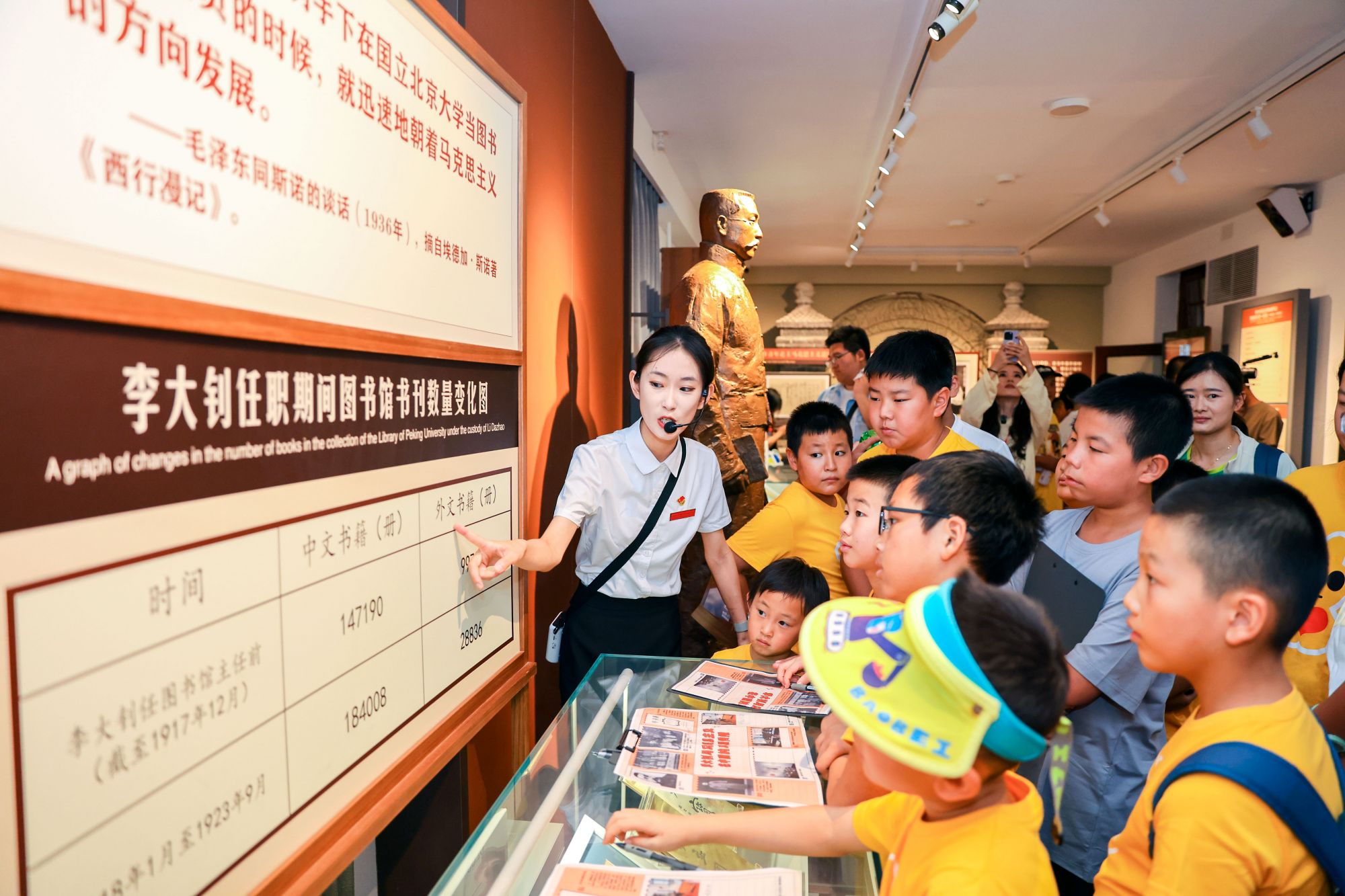 在北大红楼馆区,孩子们正在了解李大钊的光辉事迹。