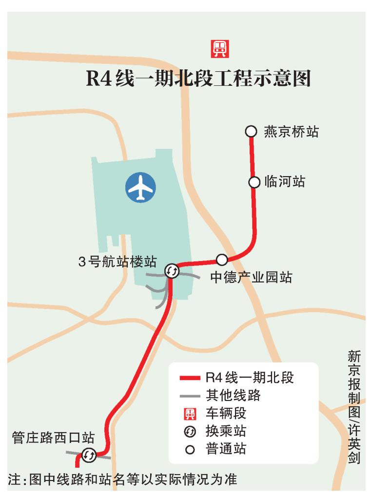 R4线一期北段预计2029年建成,将与3号线、首都机场线实现换乘,并连通首都机场3号航站楼