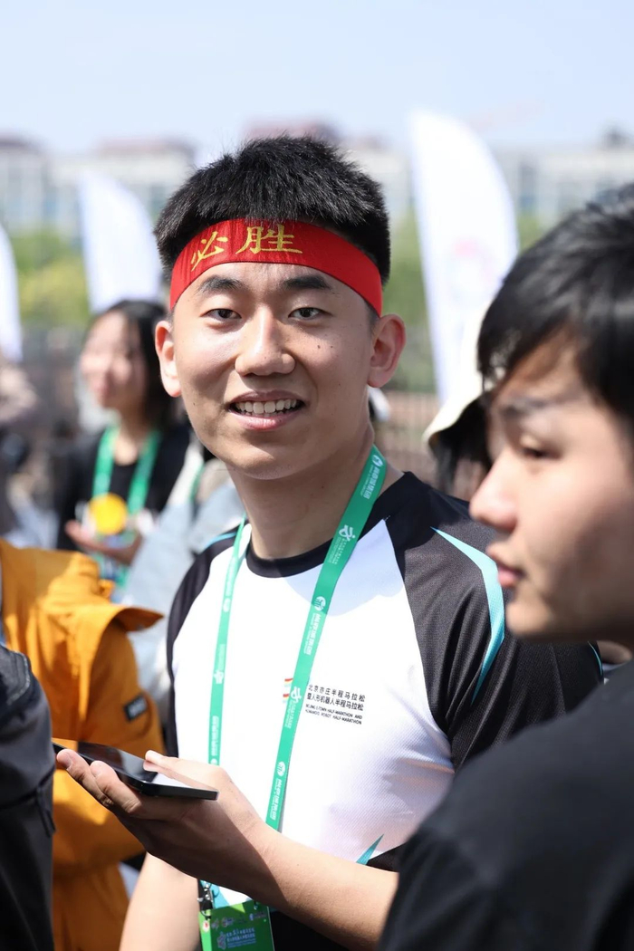 ▲马拉松比赛当日,姜哲源在赛场外等待N2冲线。 企业供图