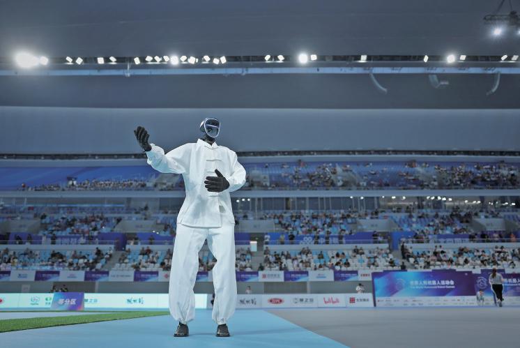 8月15日,武术比赛,一名机器人选手展示“功夫”。新京报记者 薛珺 摄