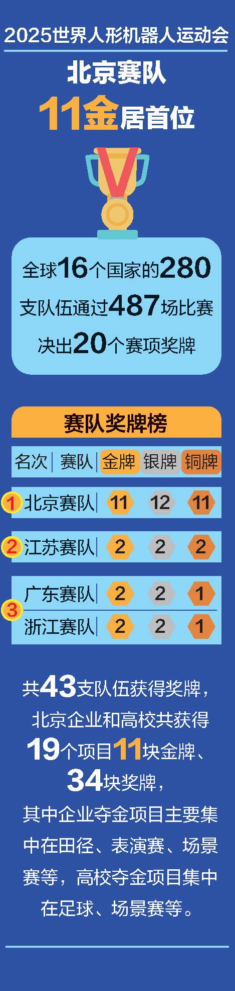 全场唯一全自主奔跑完赛的天工Ultra夺得世界首个人形机器人运动会史上“百米飞人”,宇树北京分公司灵翌科技斩获1500米金牌,清华火神队获得全球首个5V5足球赛冠军,银河通用G1机器人全自主识别药品分拣、松延动力小顽童获自由体操和立定跳远的冠军,星动纪元获得原地跳高冠军……据北京市经信局统计,本届世界人形机器人运动会26个赛项中北京队斩获11块金牌稳居首位,这些北京企业和北京赛队凭什么夺冠?