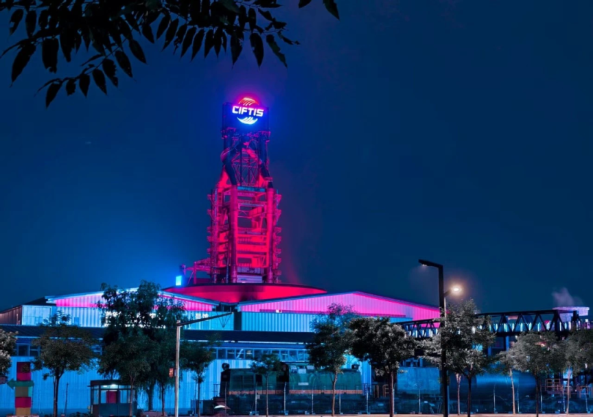 升级首钢园“两轴—两区—两湖—多中心”夜景观格局,构建看山水、看历史、看城市的景观眺望点,营造别具一格的服贸会夜间氛围。四高炉炉顶的服贸会LOGO将点亮百米夜空,成为京西视觉新地标。