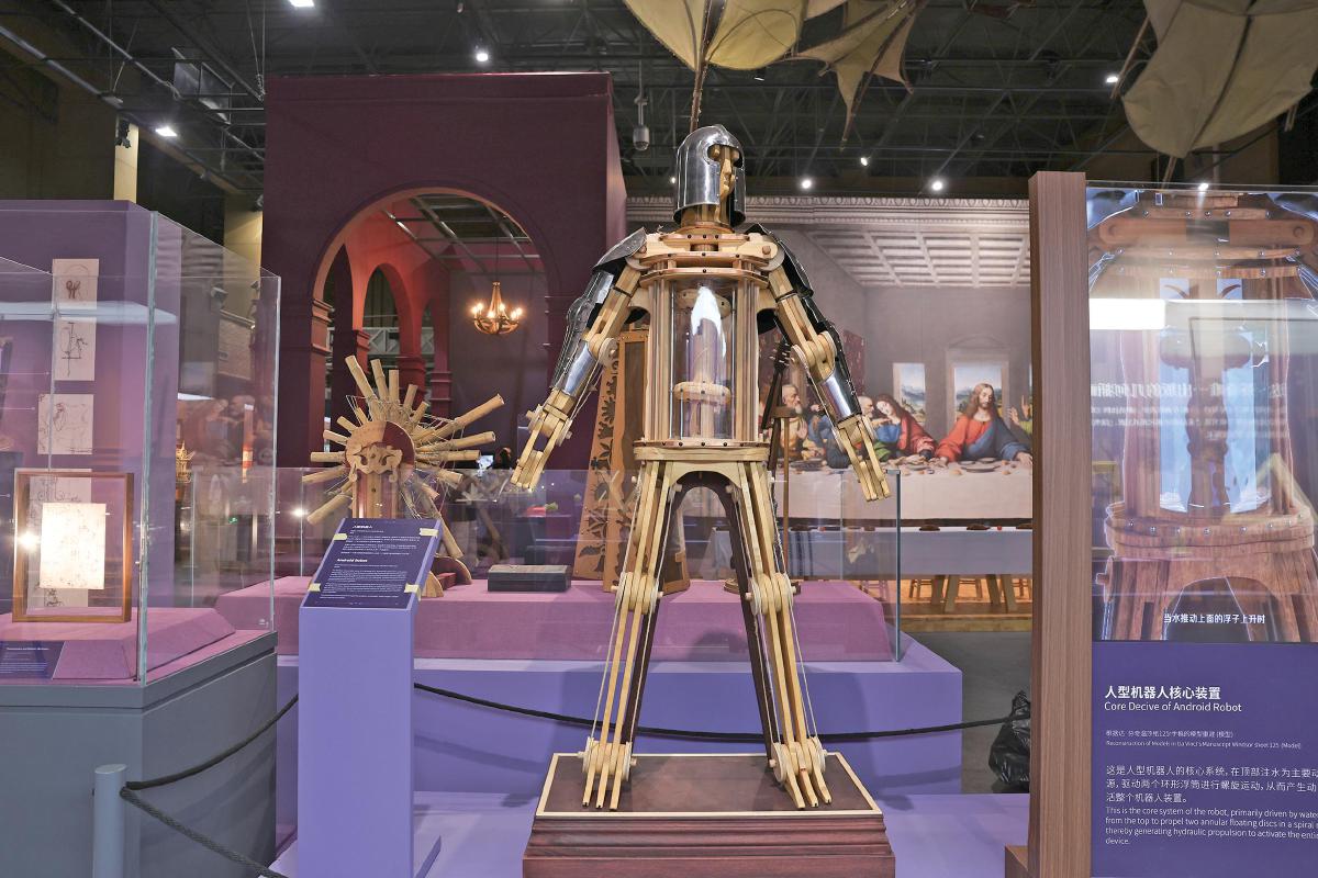 今年6月,“时空和鸣——解密达·芬奇的艺术科技与自然韵律”特展在国家自然博物馆开幕。展厅中的“安卓”机器人是根据达·芬奇温莎纸125r手稿模型重建。