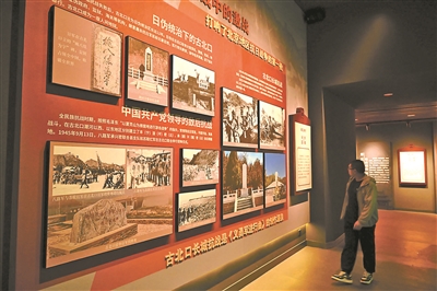 古北口今属密云区,因此在古北口历史文化馆中明确,北京抗日战争的第一枪正是在古北口打响。古北口历史文化馆设有独立展区,介绍1933年的古北口长城抗战,以及日伪统治下的古北口。在众多展品中,一张“掩八紘為宇”碑的照片引起记者注意。展馆信息显示:日军在古北口立“掩八紘為宇”碑,妄图占领全中国,称霸全世界。