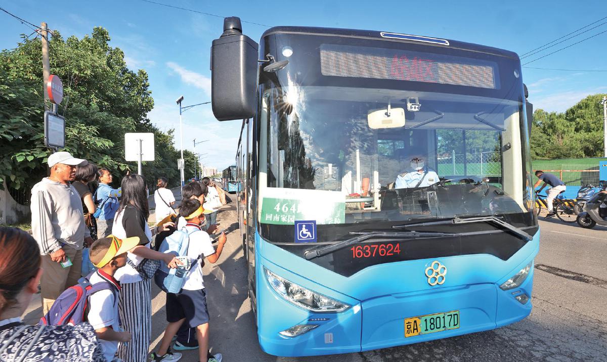2024年9月2日,都市芳园站,学生们有序登车。2024年秋季学期,北京新增通学公交线路40条。