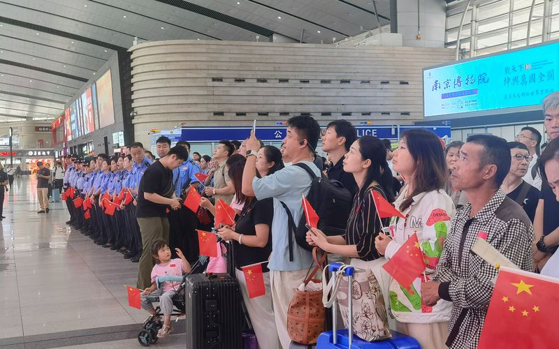当受阅队伍走过广场,旅客们被庄严肃穆的气氛带动,还有军事迷和朋友分享装备的故事。一位中年旅客一直站在屏幕下,他告诉记者,他是浙江人,正好乘车回浙江,提前就知道了车站会直播,所以早早到来,在这里看完全程。他年轻时曾当过兵,这段经历是他人生中最大的财富,而今天,许多装备已经更新,军种也比过去更丰富了,这让他真切地感受到国家的进步。