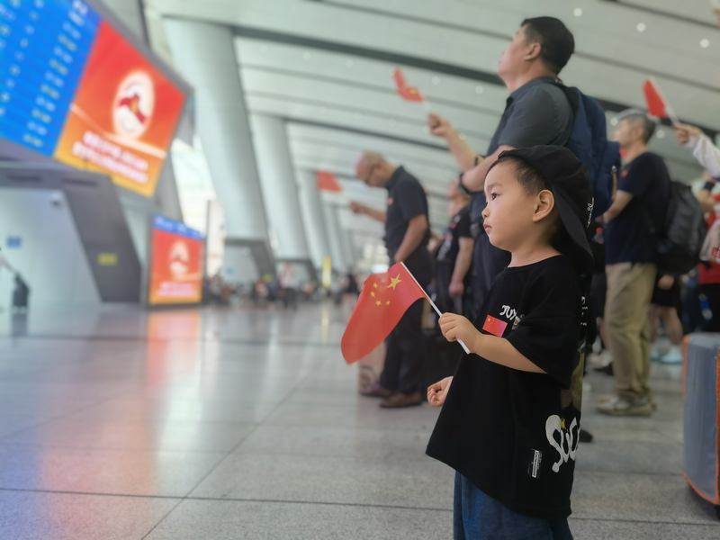“每次看阅兵,都是一次精神的洗礼。”温家伟说,“尤其是这一次,在做好自己本职工作的同时,和这么多旅客一起看直播,心里都是自豪感。山河无恙,愿祖国繁荣昌盛。”