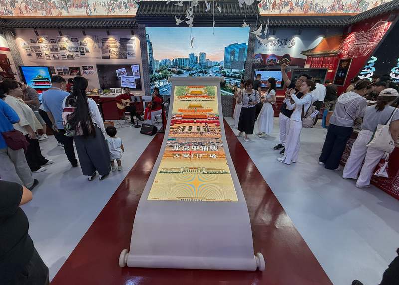 步入服贸会北京东城展区,正中间是一幅动静交融的中轴长卷。新京报记者 王贵彬 摄