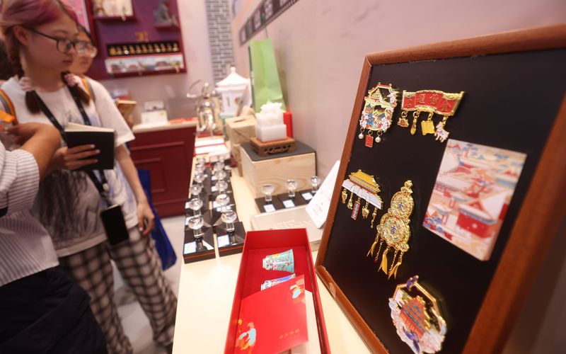服贸会北京东城展区现场展示了各类文创产品。新京报记者 王贵彬 摄