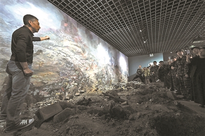 在新馆内,最引人注目的是一幅长11米、高3米的“南口战役全景油画”,其生动再现了高楼长城、黄楼院、横岭等关键战场的历史场景。“抗战题材画作不是简单的风景画,要尽可能接近历史,于是我在网上查阅资料,并3次到昌平高楼长城采风。”这幅油画的主创人员房新中告诉北青报记者,他们在动笔前做了很多功课,创作这幅画不为宣扬战争,而是希望通过还原战地场景,警示后人居安思危,自强不息。
