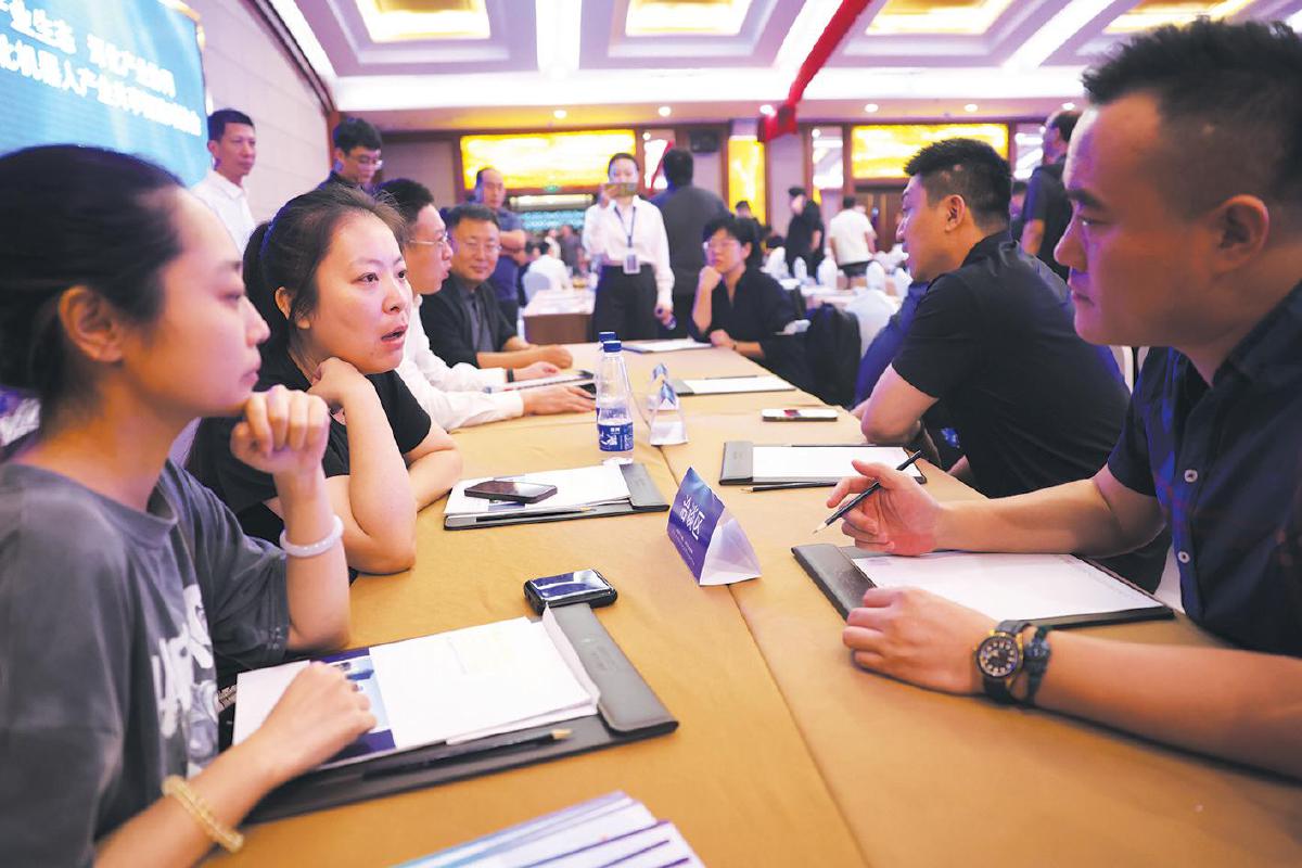 9月16日下午,北京·河北机器人产业共享智造对接会在京举行。在洽谈区,唐山高新区相关部门负责人与企业代表交流。