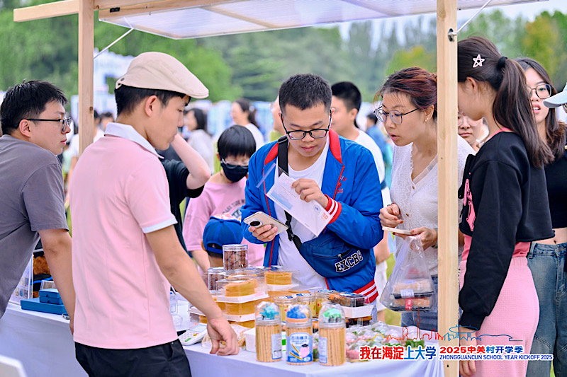 在海淀公园,海淀区各街镇和委办局的29个“迎新社团”展位依次排开,“高校市集”区域23家高校展位香气四溢,腾讯、滴滴等辖区企业携展位亮相。从“海淀文旅”的深度城市漫游指南,到“中关村代码先锋社团”的黑客马拉松直通卡,到各街镇社团的手工体验和文创产品,再到腾讯的金融“青”计划所含各类金融权益和反诈宣传,吸引了大量新生驻足体验。海淀各高校的匠心文创、中国农大的大豆冰淇淋、北科大的酸奶、信息科大的文创月饼、北京协和医学院的培根本草袋泡茶等高校特色美食+文创产品首次联合出摊,成为当天颇受学生欢迎的“学校食堂”。“大家都很热情,推荐了不少海淀区的隐藏打卡点,让我对这座城市充满期待。”新生李同学在咨询文旅景点时表示。