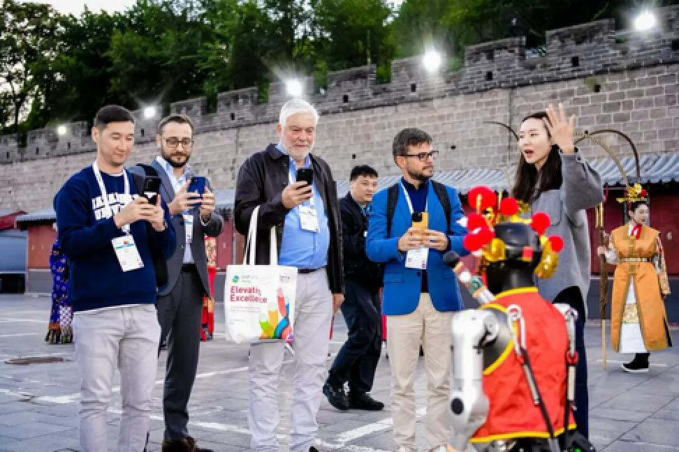 在文化参访线路中,嘉宾登临居庸关长城远眺。夜幕下的居庸关长城流光璀璨,古今交汇的场景令嘉宾纷纷举起手机拍照留念。居庸关长城脚下的非正式晚宴,融合“科技感”与“文化味”。在机器人互动展区,嘉宾们与机器人热情互动、合影打卡;大明服饰秀、川剧变脸、鱼灯舞巡游等节目演出,与茶艺体验、非遗展示等文化活动交相辉映,让嘉宾在沉浸式体验中感受中华文化与现代科技的双重魅力。与会嘉宾表示,昌平区丰富的创新资源、完善的创新生态和独特的文化魅力令人印象深刻,期待未来开展更多实质性合作。