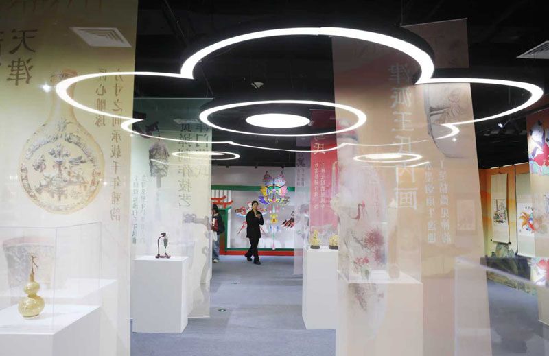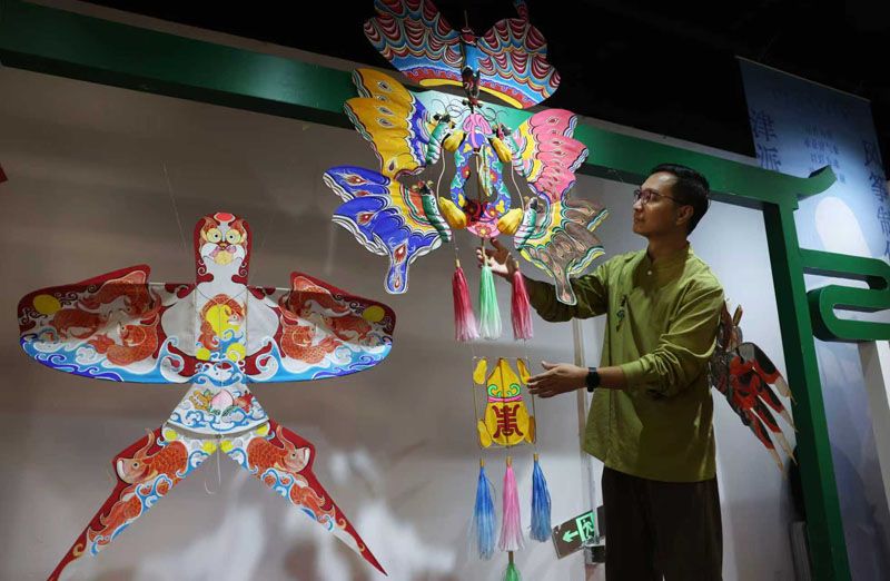 津派周氏风筝第四代传承人李维之介绍葫芦万代风筝制作。泥人张彩塑、杨柳青木版年画、津派周氏风筝、马氏花丝镶嵌、王氏内画等一批天津非遗文化技艺作品与北京观众见面。
