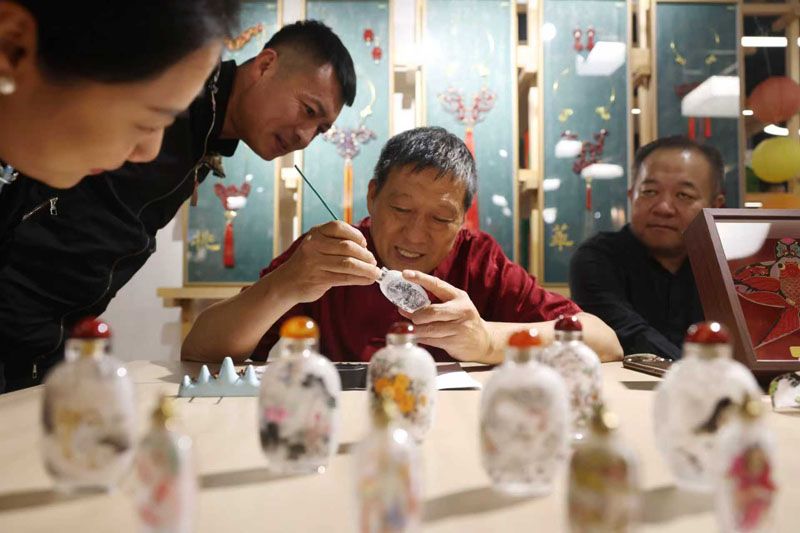 津派王氏内画技艺起源于清嘉庆年间,作品创作在玻璃、水晶等材质壶坯内反向运笔,融合国画与油画技法,涵盖山水、动物等题材。