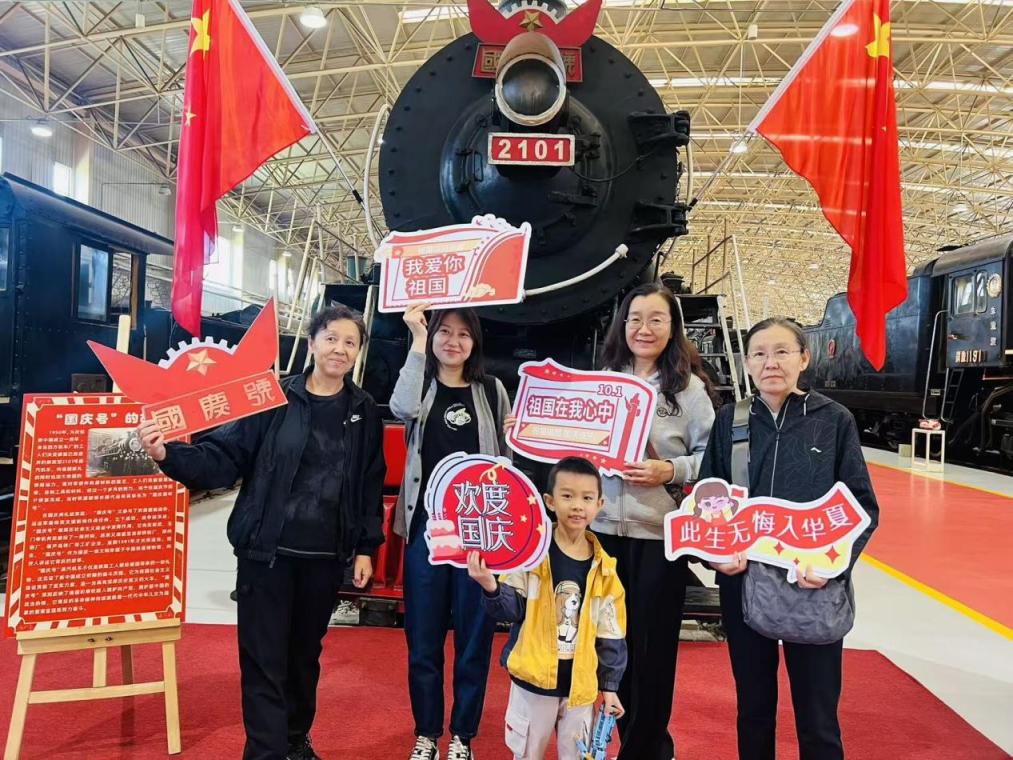 与此同时,“国庆号”蒸汽机车以全新装扮亮相展馆,同期启动“我为国庆送祝福”互动活动。蒸汽机车车身融合国庆元素,兼具历史风貌与节日气息,是观众拍照留念的热门场景。展区特设祝福书写区,观众可书写对祖国的祝愿,参与即赠“国庆号”限定纪念贴纸。
