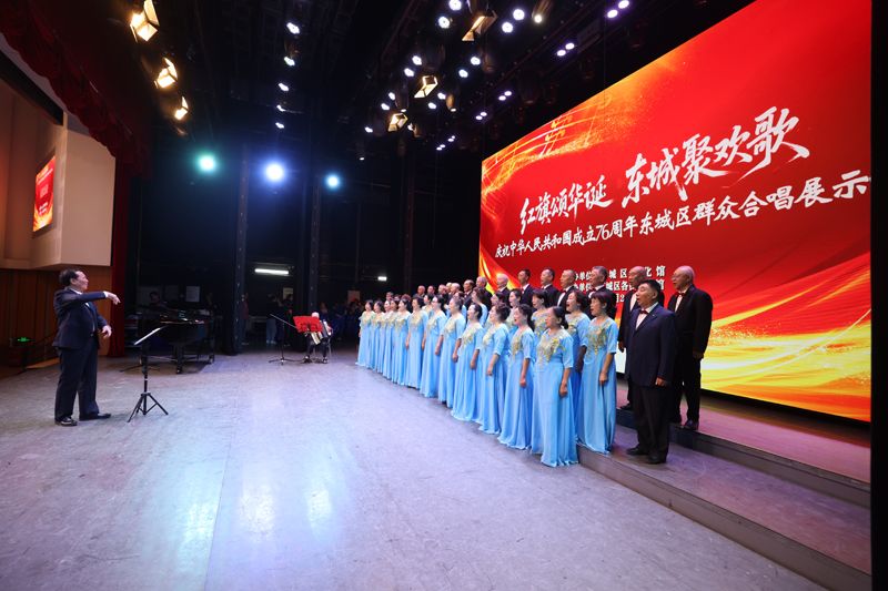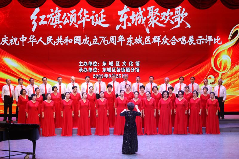 9月25日,东城区文化馆三层风尚剧场,“红旗颂华诞 东城聚欢歌”庆祝中华人民共和国成立76周年群众合唱展示评比活动举行,9支合唱团经东城区各街道分馆推选入围参评,它们之中既有“乐”享退休时光的银龄合唱团,也不乏因热爱歌唱而集结的年轻团队。