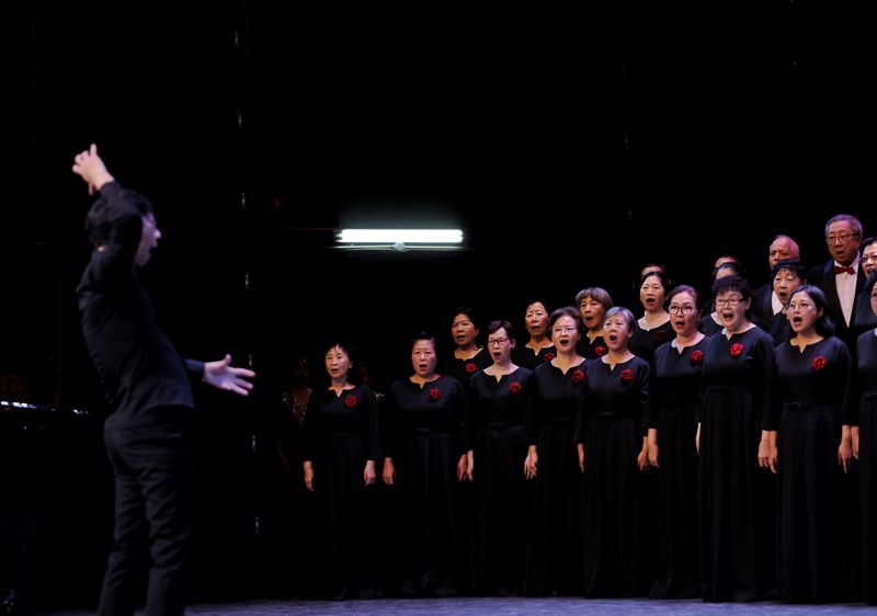 颐年春韵合唱团表演《岁月回荡一支歌》。