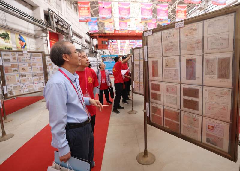 市民参观中国铁路票据票证展区。新京报记者 王贵彬 摄