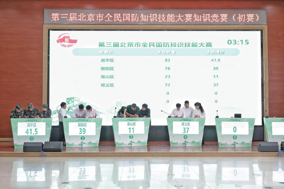 9月27日,以“弘扬抗战精神、共筑国防长城”为主题的第三届北京市全民国防知识技能大赛初赛,在北京市人防综合训练基地举行。由北京16区和在京38所高校组成的54支代表队在赛场上展开角逐,最终共有12支代表队脱颖而出,进入决赛。