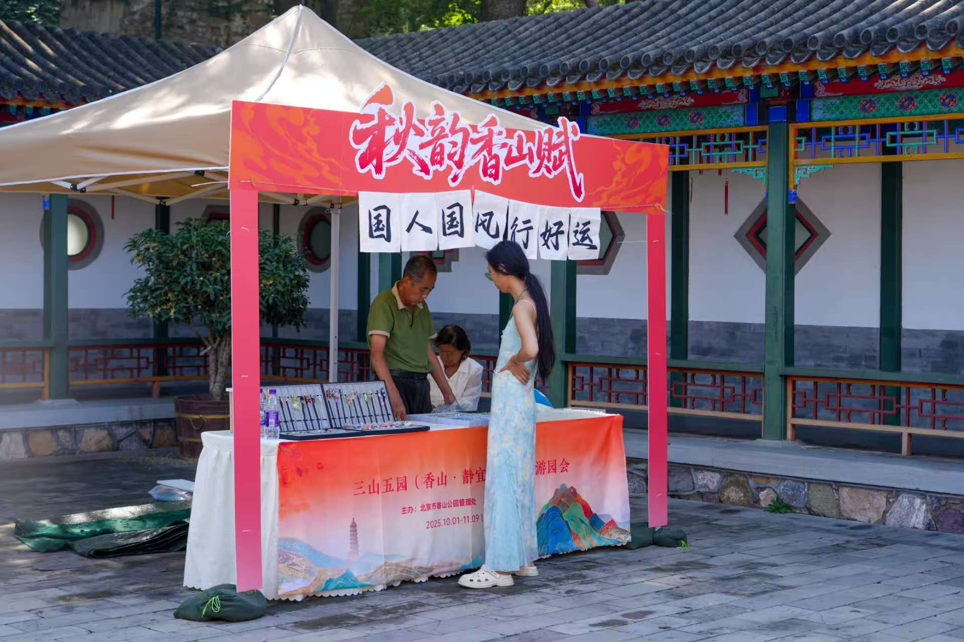致远斋景区将于10月6日上午10点举办融汇了古典舞、川剧变脸、民乐魔术的“桂香盈秋 雅韵致远”香山中秋雅集文艺汇演;“秋韵香山赋——三山五园文化市集”将在公园主干道迎接各方游客,其中包括非遗手作、特色京味茶点与艺术装置等精彩特色内容,沿途更设有多处特色打卡板,营造“一步一景、文化沉浸”的消费场景与氛围。此外,碧云寺亲子剧本杀、北斗智行探秘等互动项目,也将为家庭游客提供别有趣味的多样选择。