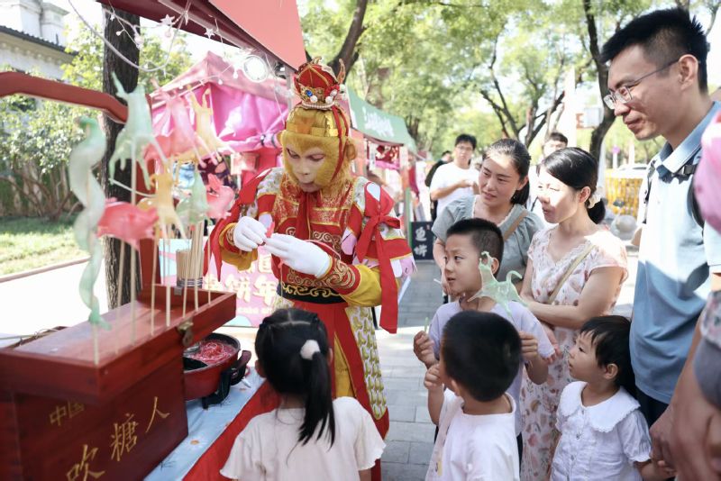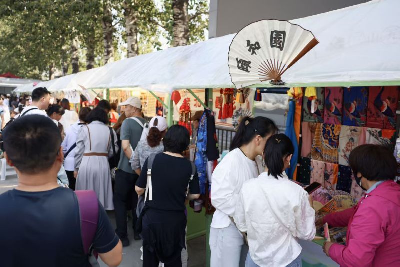 颐和园八方亭及松堂广场,游客逛“颐和风华录”市集。市集通过沉浸式场景与文创展示,引领游客深度感受皇家园林的东方美学意蕴与古典生活雅趣。