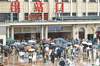 10月8日,北京地区乘坐火车抵京的旅客达到88万人。为确保返程运输平稳有序,北京站、北京朝阳站开启全部出站通道,方便旅客快速出站。面对大客流叠加降雨降温情况,多部门建立联动机制,全力保障场站地区有序运行,守护旅客归途。