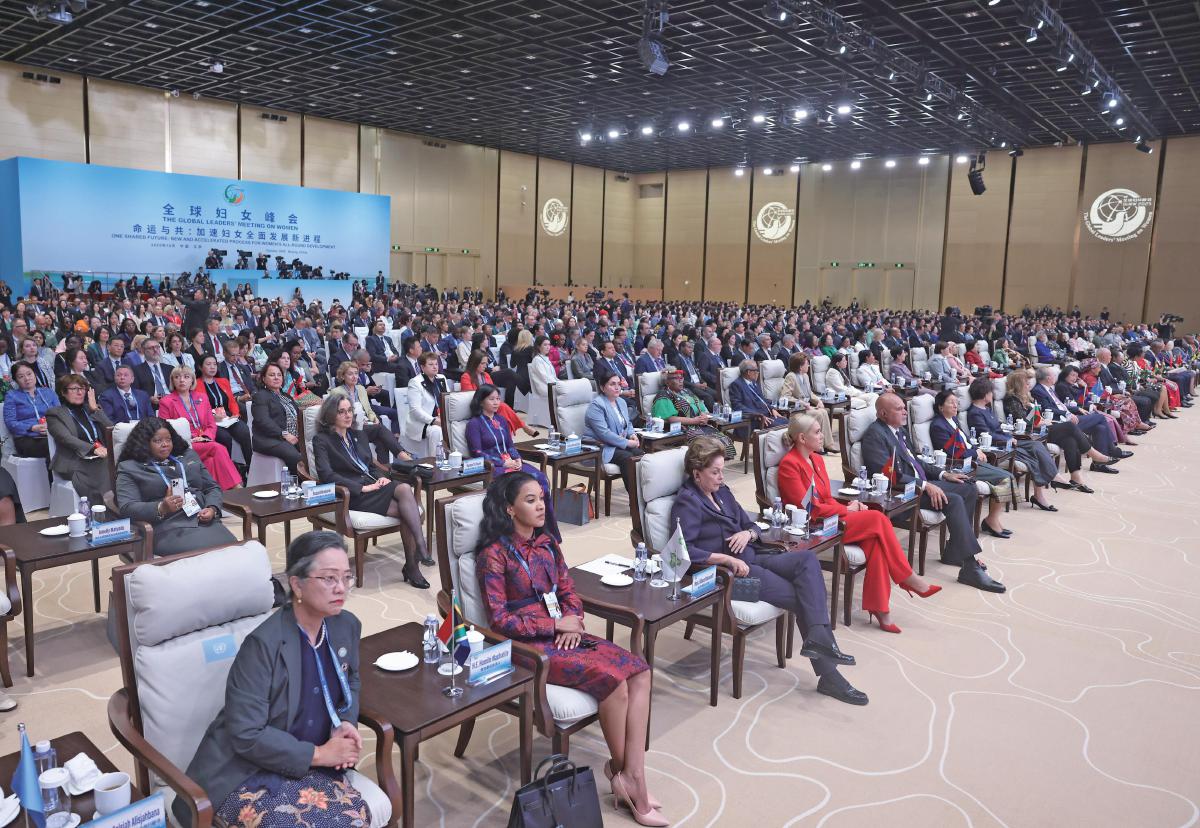 10月13日,全球妇女峰会开幕式在北京国家会议中心举行,与会嘉宾参加全球妇女峰会开幕式。新华社记者 刘卫兵 摄