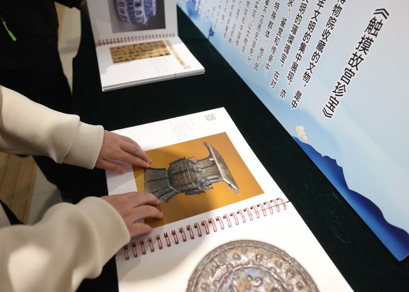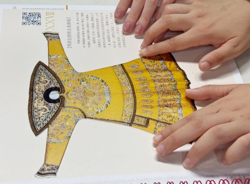 视障读者触摸“故宫珍宝”,欣赏国家宝藏。