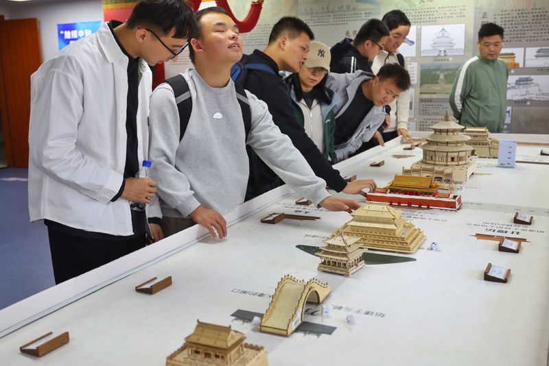 视障读者触摸“中轴线展”。